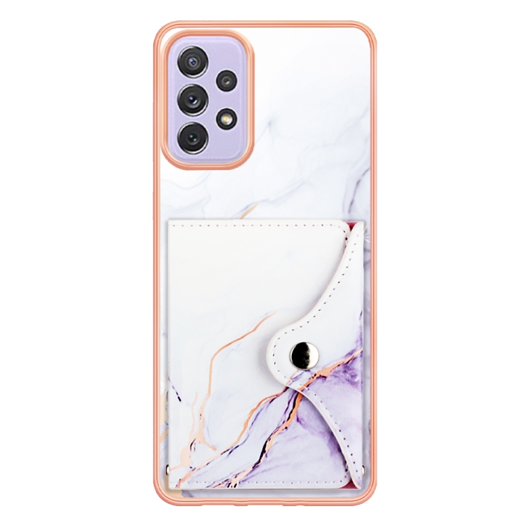 Estuche para Teléfono Samsung Galaxy A73 5G con Ranura para Tarjeta Imd y Patrón de Mármol (Blanco y Morado)