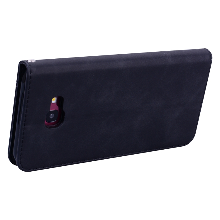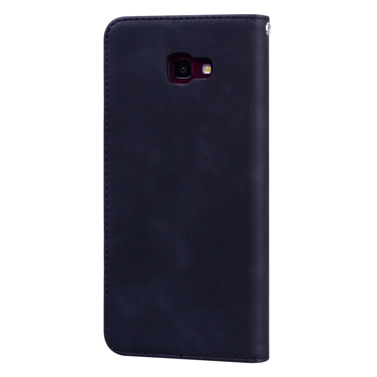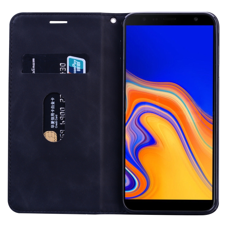 Estuche para Samsung Galaxy J4 Plus (2018) Cuero PU Tapa Horizontal Magnética Soporte Ranura Tarjeta Cordón (Negro)