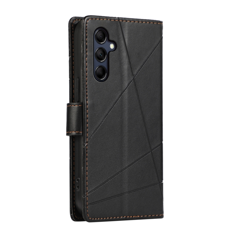 Funda para Teléfono Samsung Galaxy M14 Pu con Línea en Relieve y Textura de Cuero Genuino (Negro)