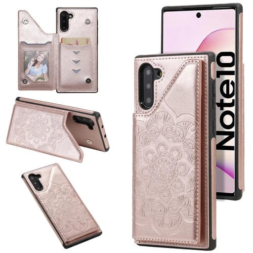 Estuche protector para Samsung Galaxy Note10 con patrón de flor en relieve a prueba de golpes con soporte y tarjetero (Oro Rosa)