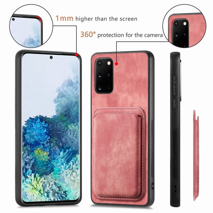 Funda de teléfono Samsung Galaxy S20 con bolsa de tarjeta magnética de cuero retro (Rosa)