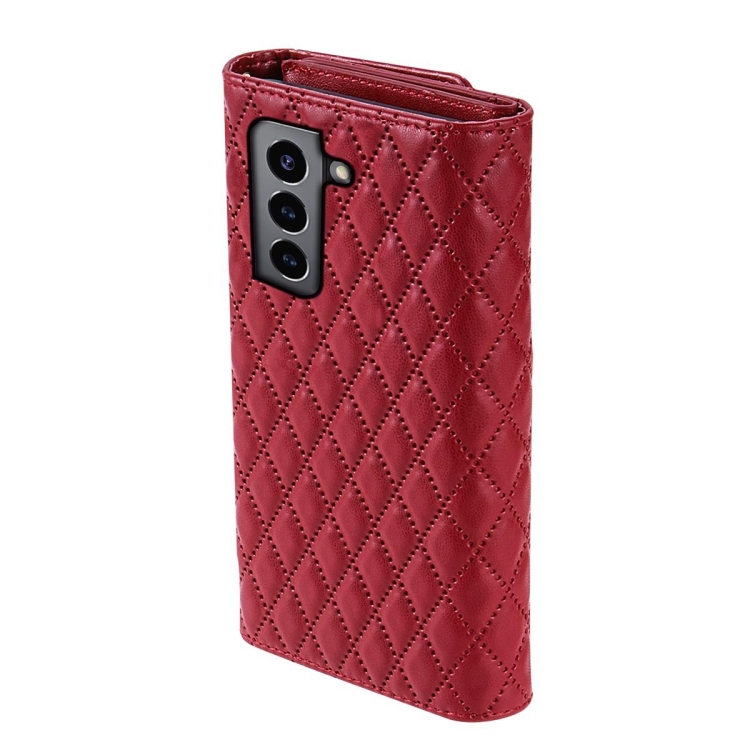 Funda para Teléfono Samsung Galaxy S21 FE 5G Billetera Múltiples Tarjetas Cremallera Cuero Rómbico (Rojo)