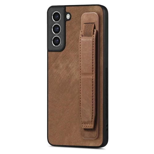 Funda Trasera para Samsung Galaxy S21 FE 5G Cuero con Soporte para Pulsera (Marrón)