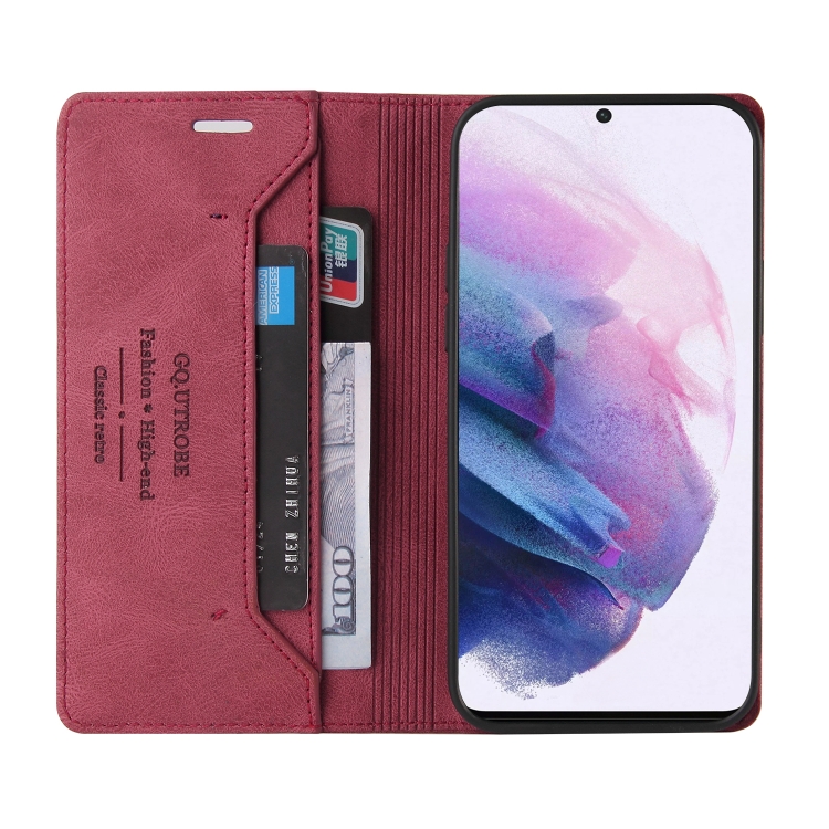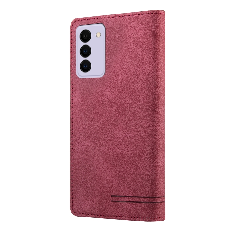 Funda de Cuero Samsung Galaxy S21 FE 5G Skin Feel con Tapa Horizontal Cepillo Antirrobo Soporte (Rojo Vino)