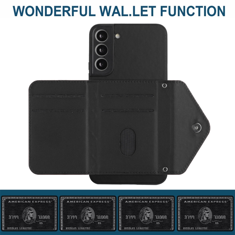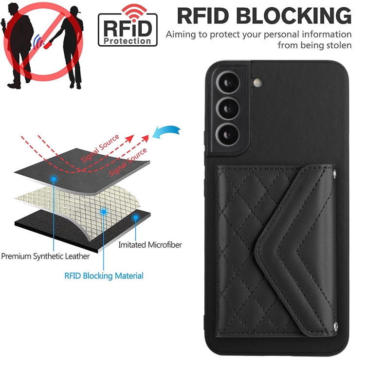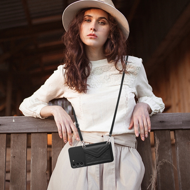 Bolsa para Tarjetas Samsung Galaxy S21 FE Textura Rómbica Estuche Rfid con Cordón Largo (Negro)