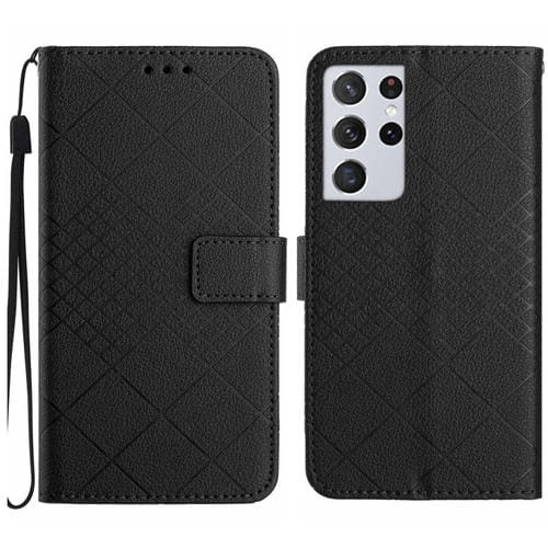 Funda para Samsung Galaxy S21 Ultra 5G Cuero Textura Rejilla Rómbica (Negro)