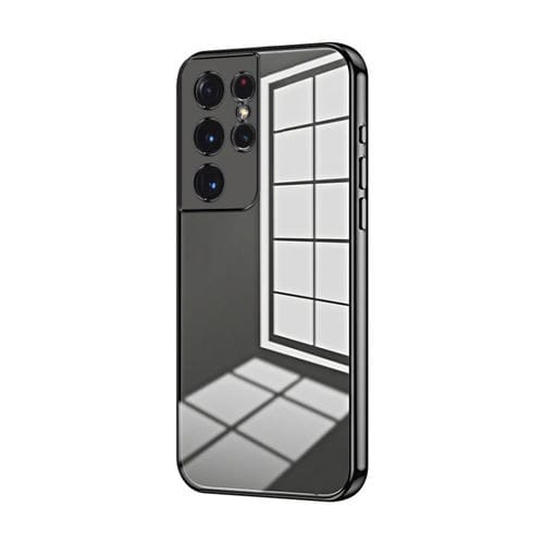 Funda para Teléfono Samsung Galaxy S21 Ultra 5G Orificio Fino Revestimiento Transparente (Negro)