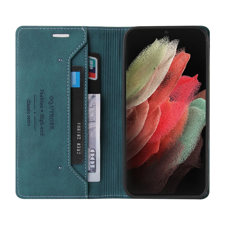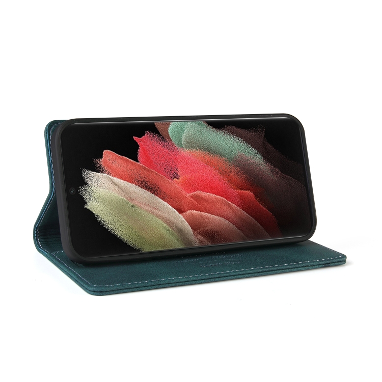 Funda de Cuero Samsung Galaxy S21 Ultra 5G Skin Feel Tapa Horizontal Cepillo Antirrobo Soporte (Azul)
