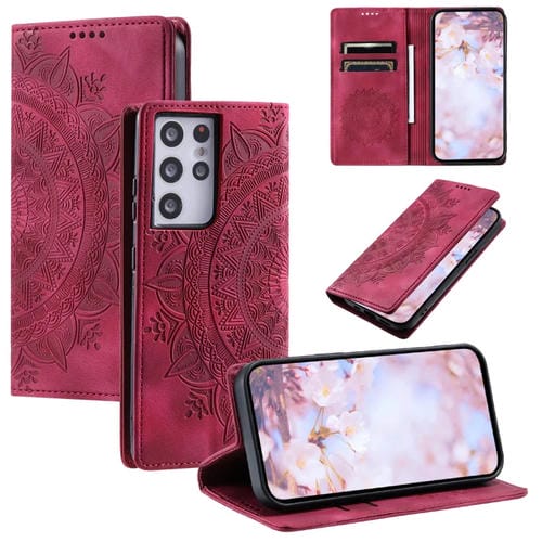Funda de Cuero Samsung Galaxy S21 Ultra 5G Totem Magnética En Relieve (Rojo)