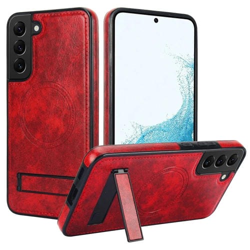 Funda para Teléfono Samsung Galaxy S22 + 5G Magsafe Soporte Invisible Cuero Retro (Rojo)