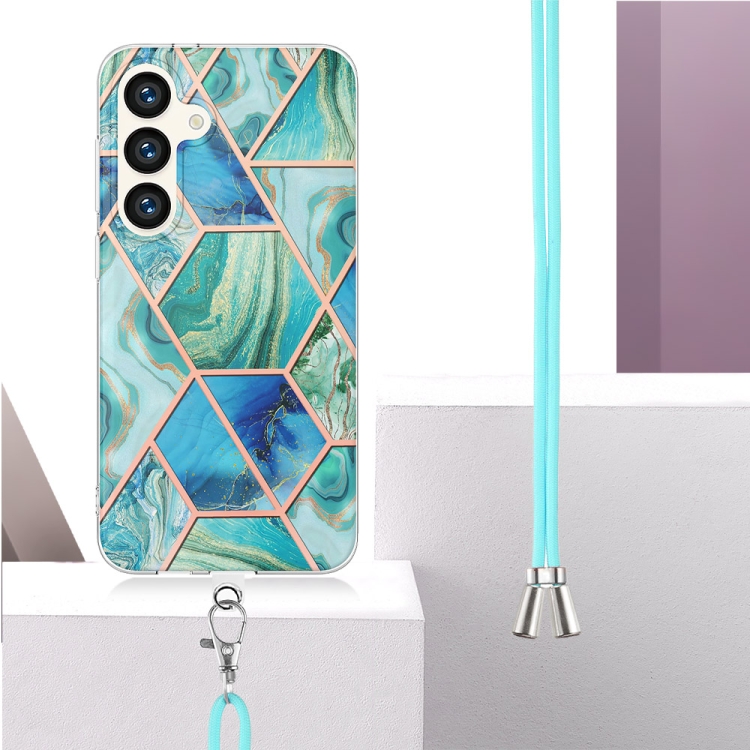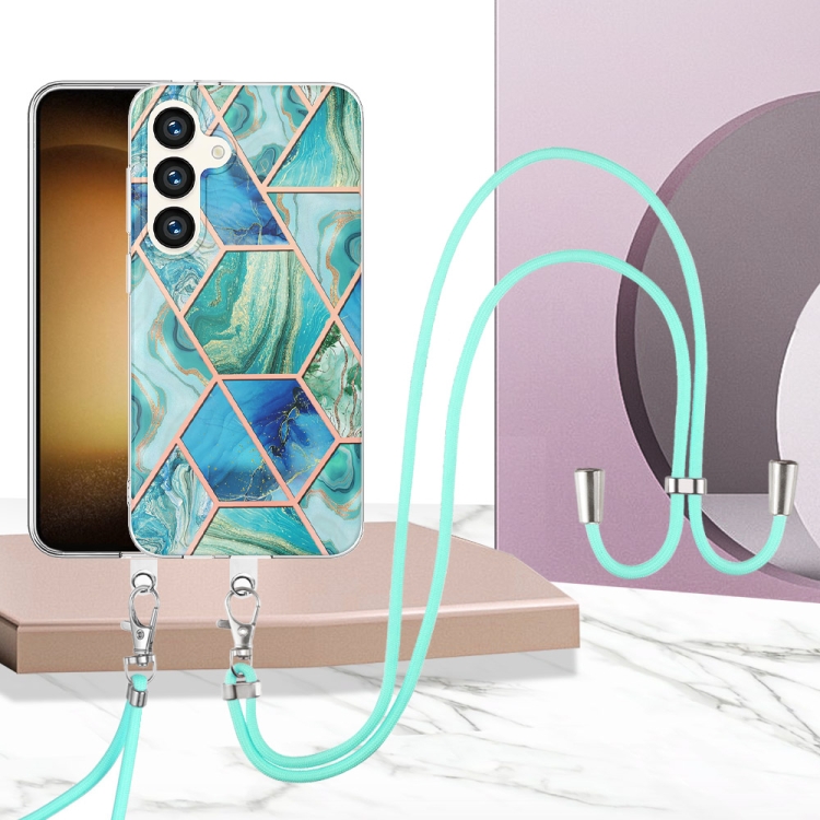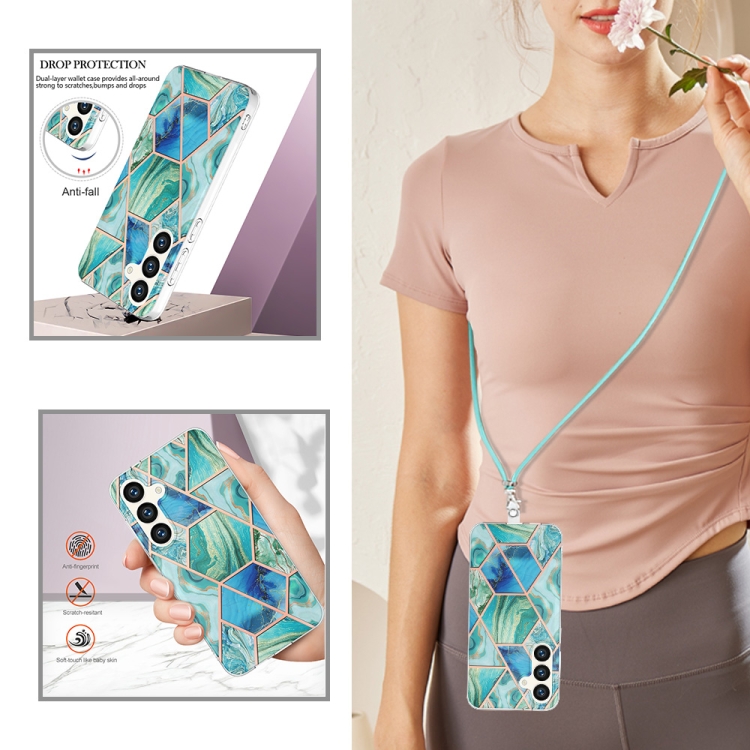 Estuche para teléfono Samsung Galaxy S24 5G TPU Mármol Doble Cara con Cordón (Verde)