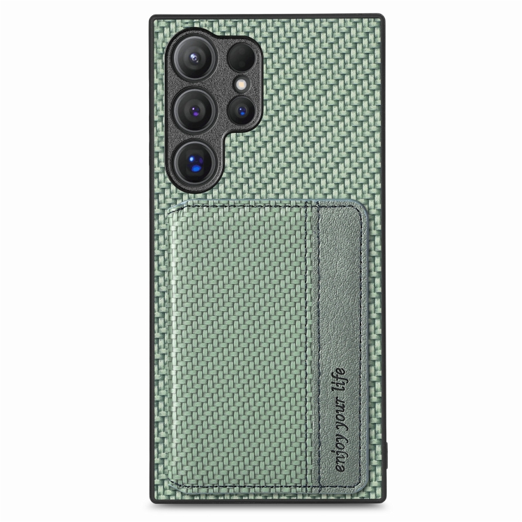 Funda para Teléfono Samsung Galaxy S24 Ultra 5G con Billetera Tarjeta Magnética Fibra de Carbono Bloqueo Rfid (Verde)