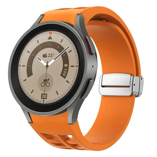 Correa de Silicona para Samsung Galaxy Watch 5 Pro 45mm Richard con Hebilla Plateada Plegable Magnética (Naranja)