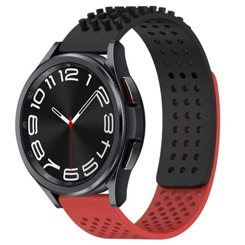 Correa de Silicona para Samsung Galaxy Watch 6 Classic 43mm 20mm Agujeros Transpirable (Negro + Rojo)