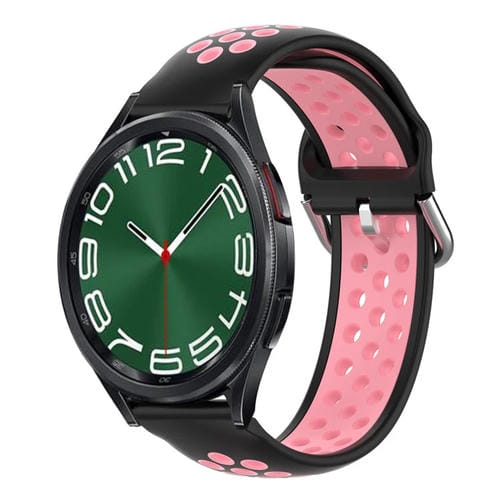 Banda de Reloj de Silicona Deportiva para Samsung Galaxy Watch 6 Classic 43mm 20mm (Negro + Rosa)