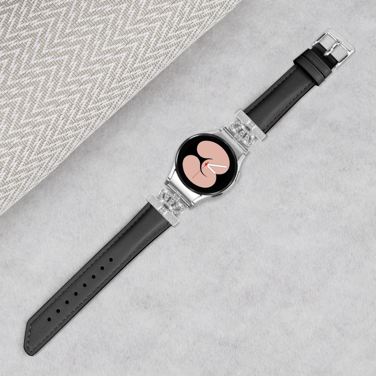 Correa de Cuero Sarga para Samsung Galaxy Watch6/6 con Forma de D y Corona Clásica (Negro Plateado)