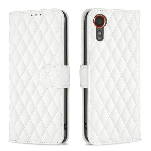 Funda para Samsung Galaxy Xcover 7 Diamond Lattice Wallet de Cuero con Tapa (Blanco)