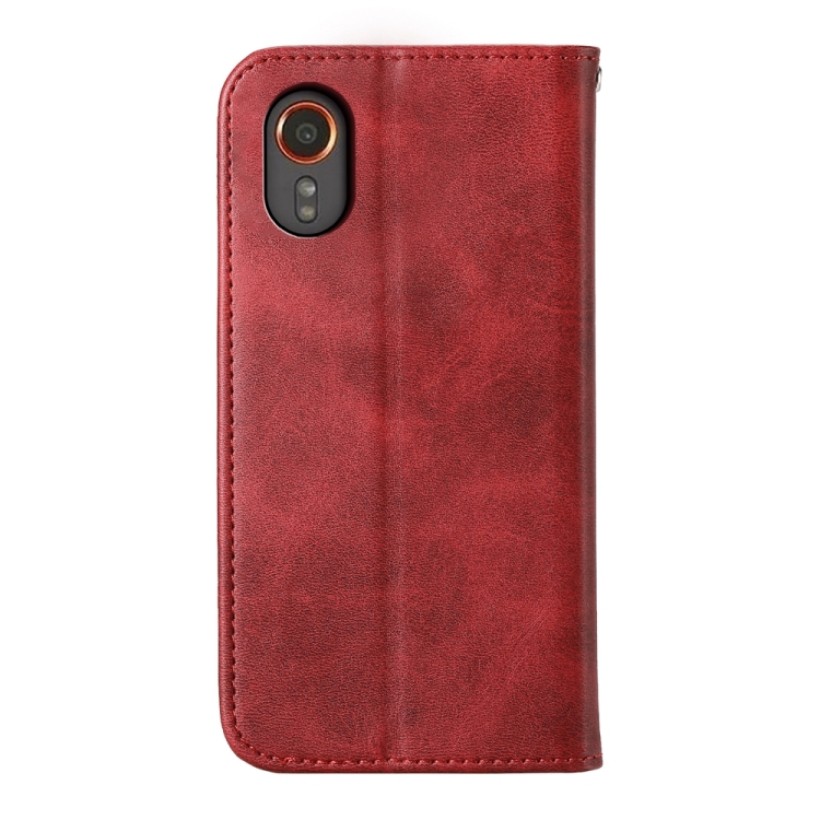 Funda para teléfono Samsung Galaxy Xcover 7 Cuero Magnético Textura de Becerro Rejilla Cúbica (Rojo)