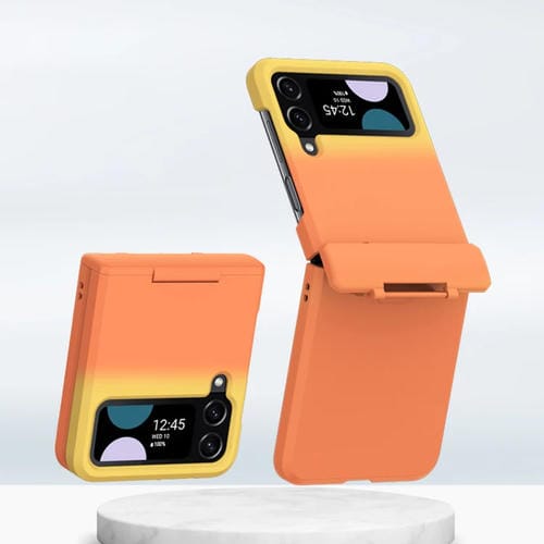 Funda para Samsung Galaxy Z Flip3 5G y Z Flip4 5G con Eje Medio Plegable y Sensación de Piel para PC (Amarillo Naranja)
