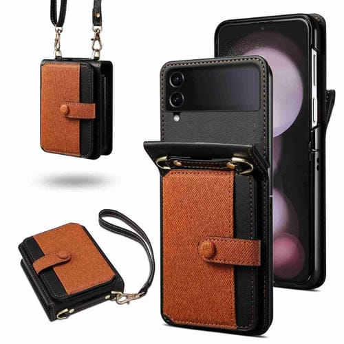 Estuche para Teléfono Samsung Galaxy Z Flip3 Plegable a Juego con Colores Cruzados (Marrón)