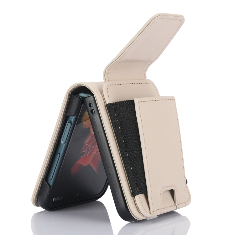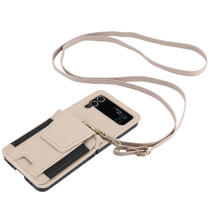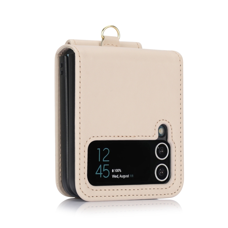 Estuche plegable para Samsung Galaxy Z Flip3 con ranuras para tarjetas y cordón largo (Albaricoque)