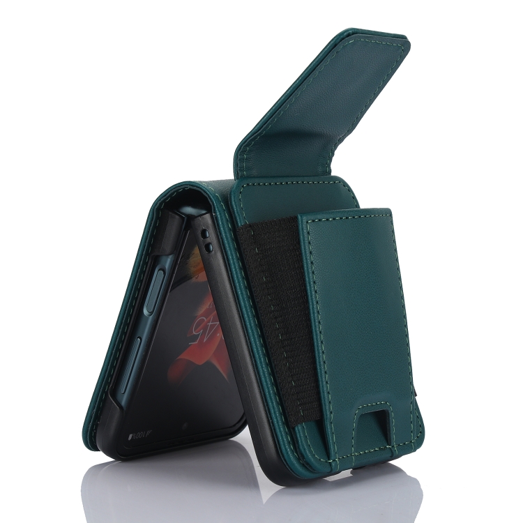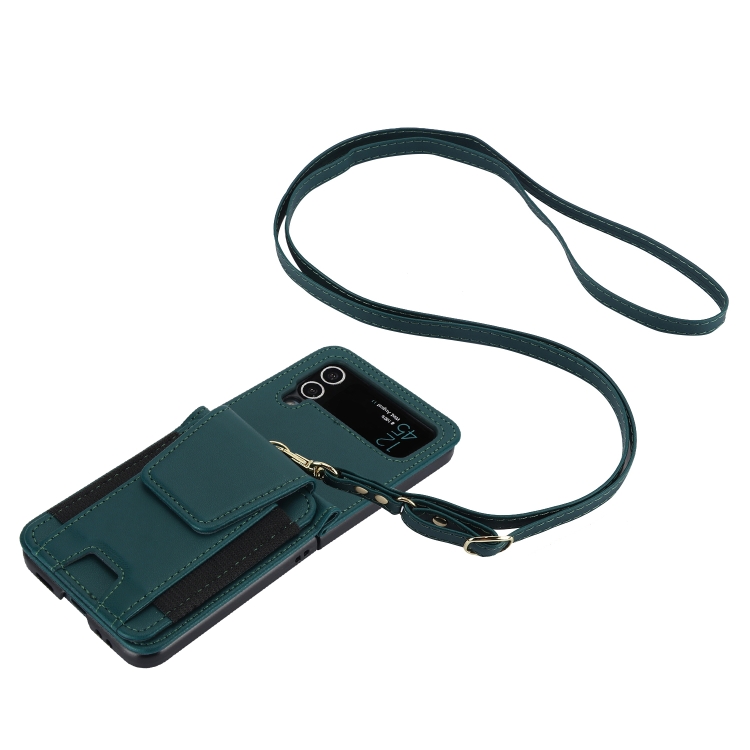 Funda para Teléfono Samsung Galaxy Z Flip3 Plegable con Ranuras para Tarjetas y Cordón Largo (Verde)