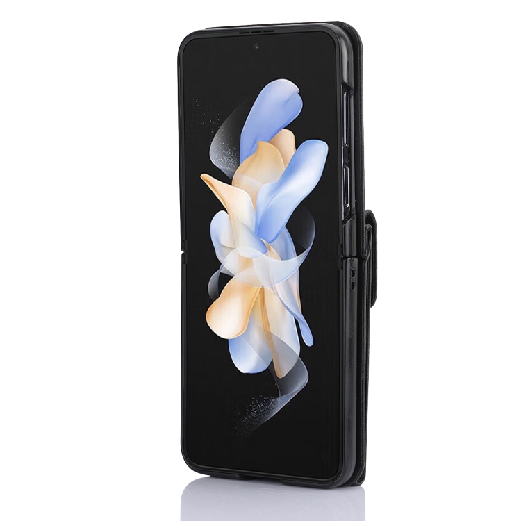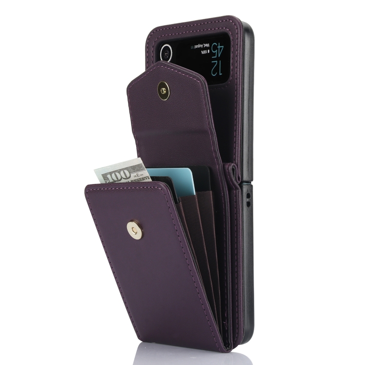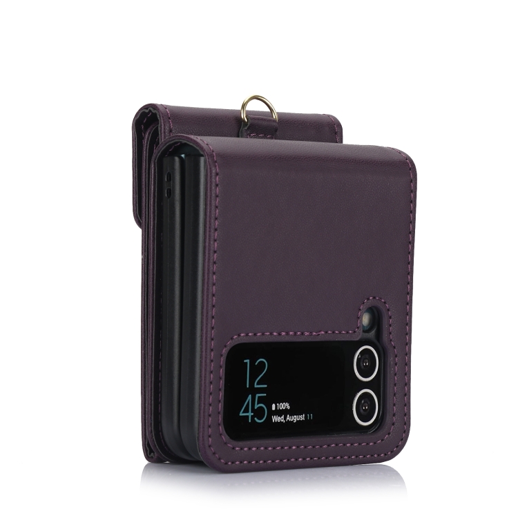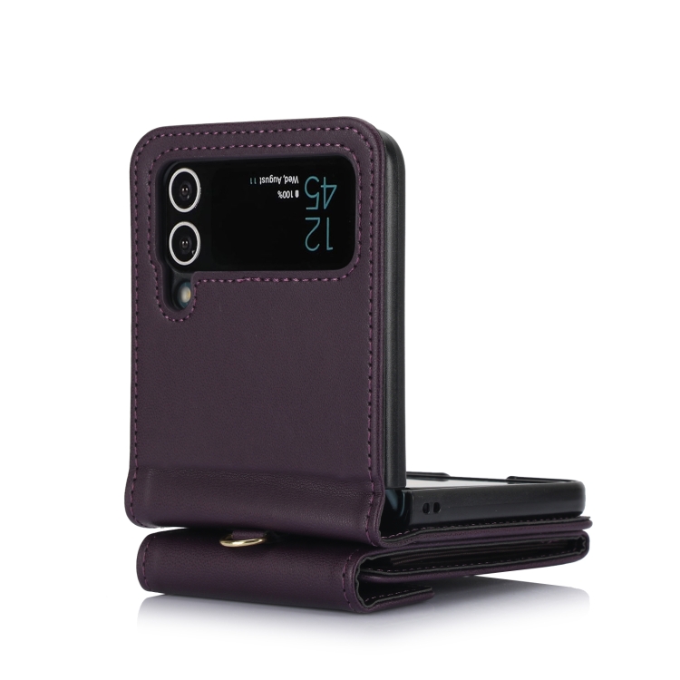 Estuche plegable para teléfono Samsung Galaxy Z Flip3 con ranuras para tarjetas y cordón largo (Púrpura Oscuro)