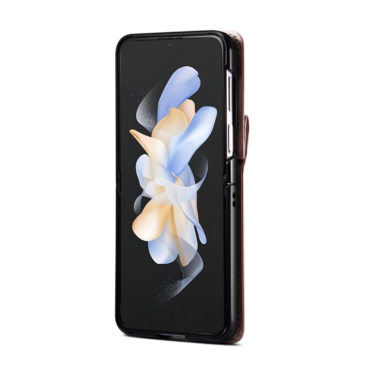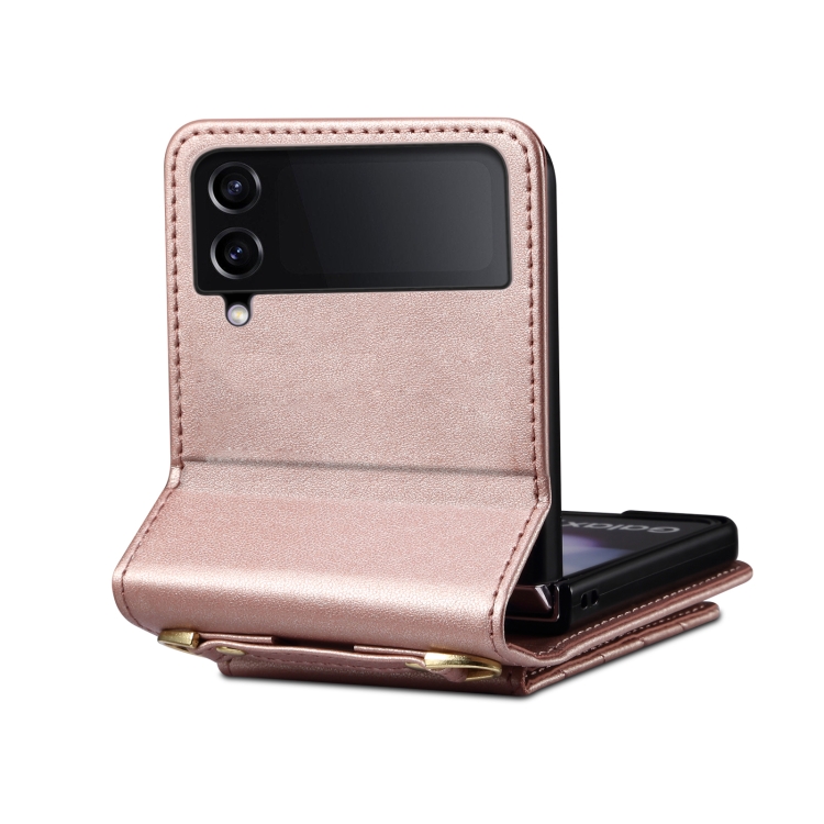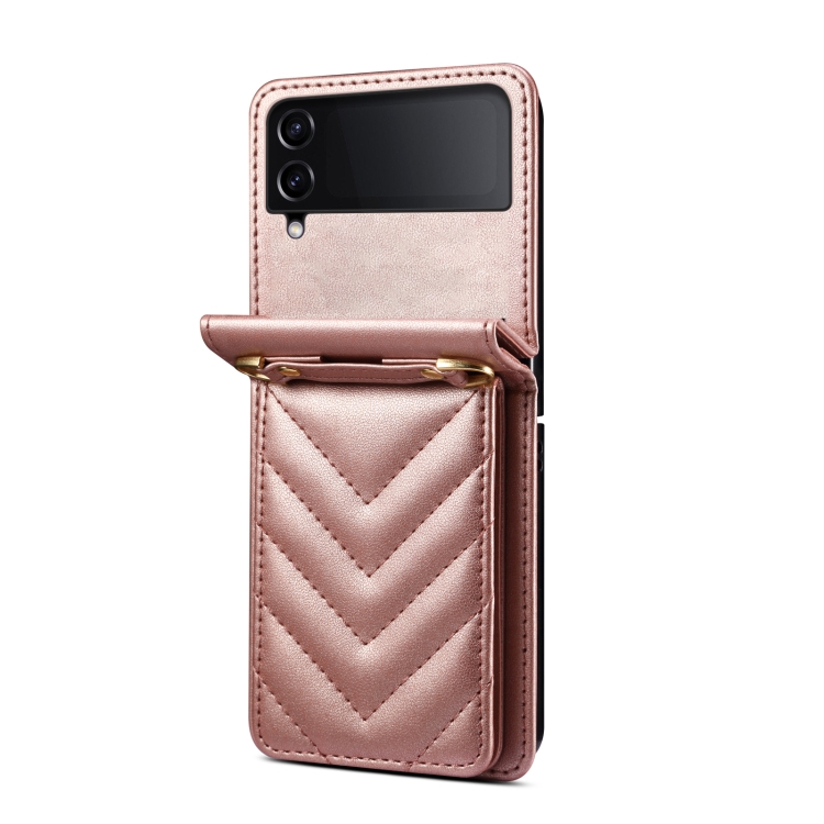 Estuche para Teléfono Samsung Galaxy Z Flip4 Cuero Plegable Rómbico con Cordón Largo (Oro Rosa)