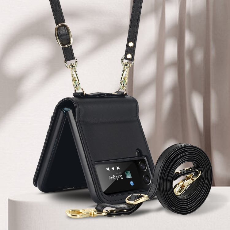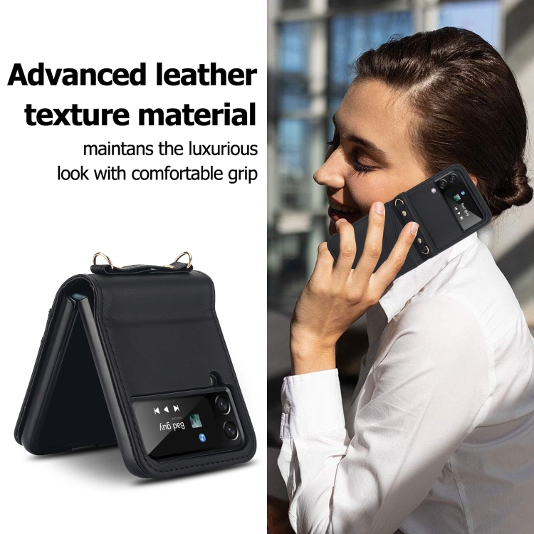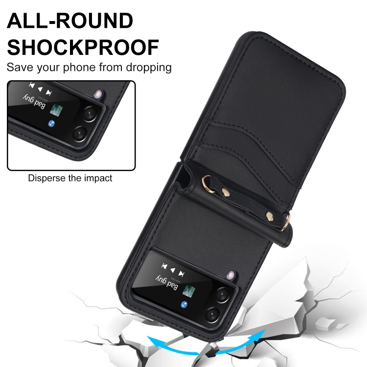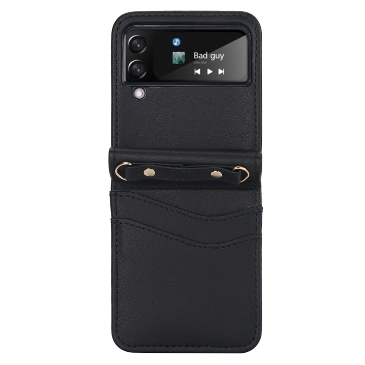 Estuche plegable para teléfono Samsung Galaxy Z Flip4 con ranuras para tarjetas duales (Negro)
