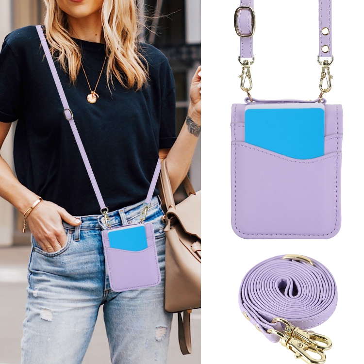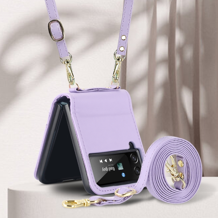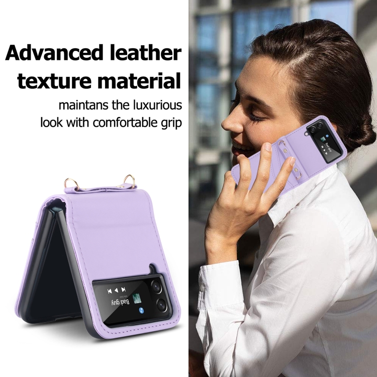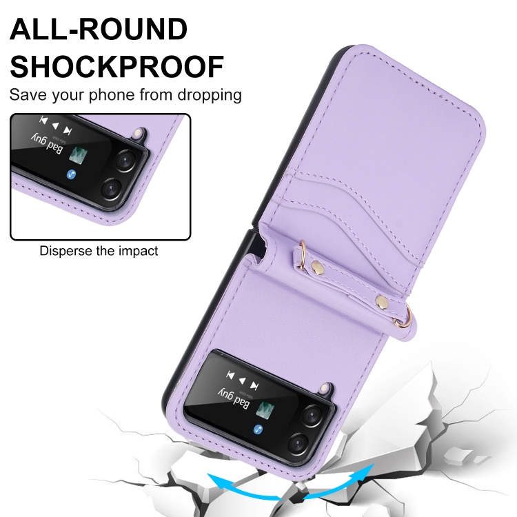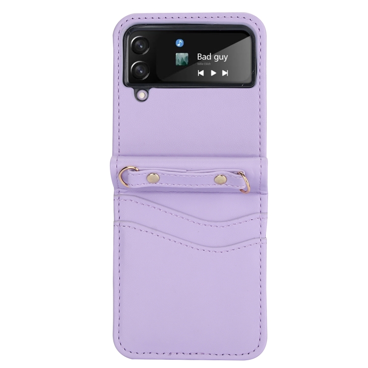 Estuche plegable para Samsung Galaxy Z Flip4 con ranuras para tarjetas duales (Púrpura)