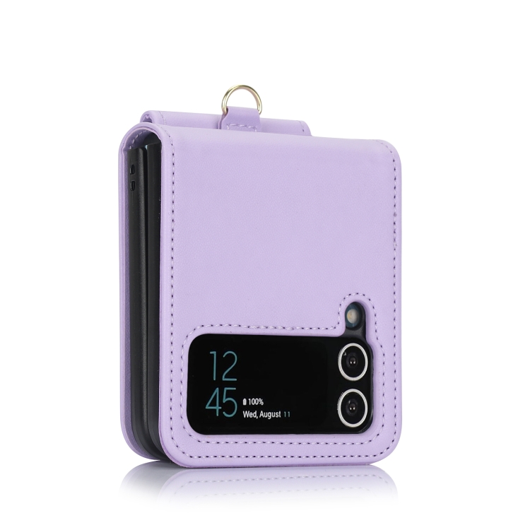 Estuche plegable Samsung Galaxy Z Flip4 con ranuras para tarjetas y cordón largo (Púrpura Claro)