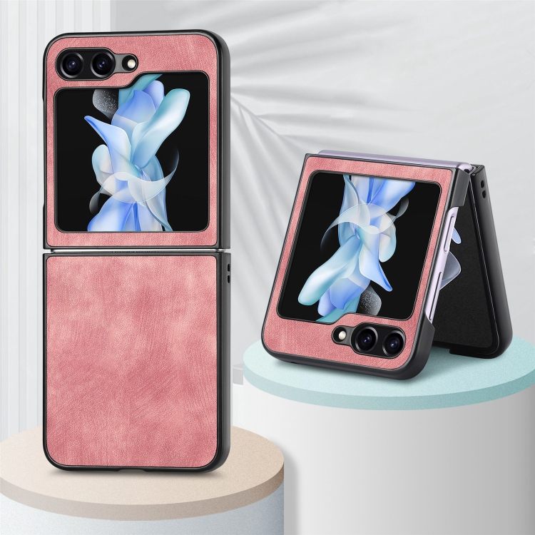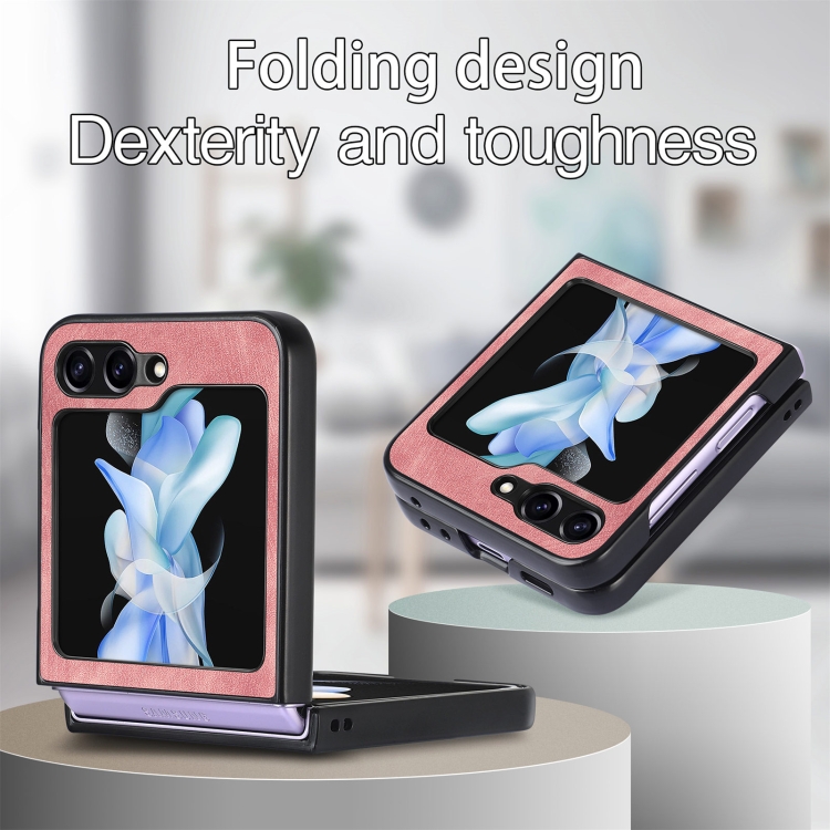 Funda de Teléfono Samsung Galaxy Z Flip5 5G Cuero Retro a Prueba de Golpes (Rosa)