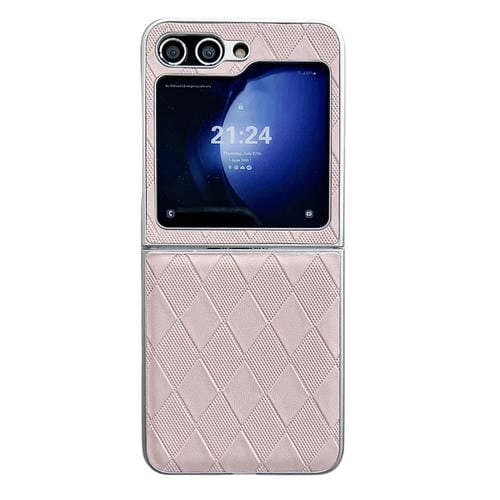 Funda para Teléfono Samsung Galaxy Z Flip5 5G Cuero a Cuadros Pintura Nacarada Forma de Diamante (Rosa)