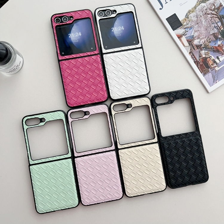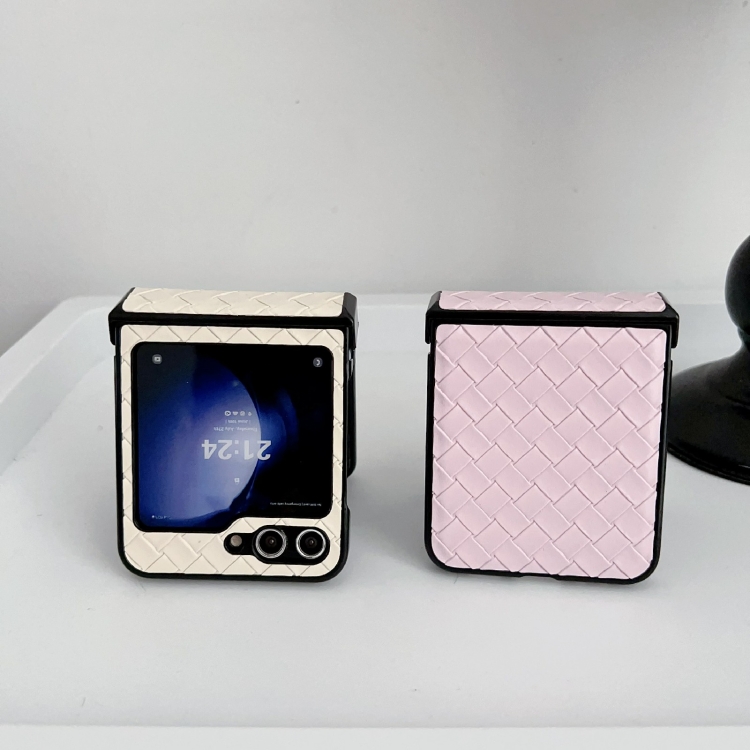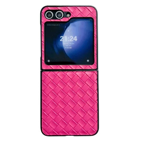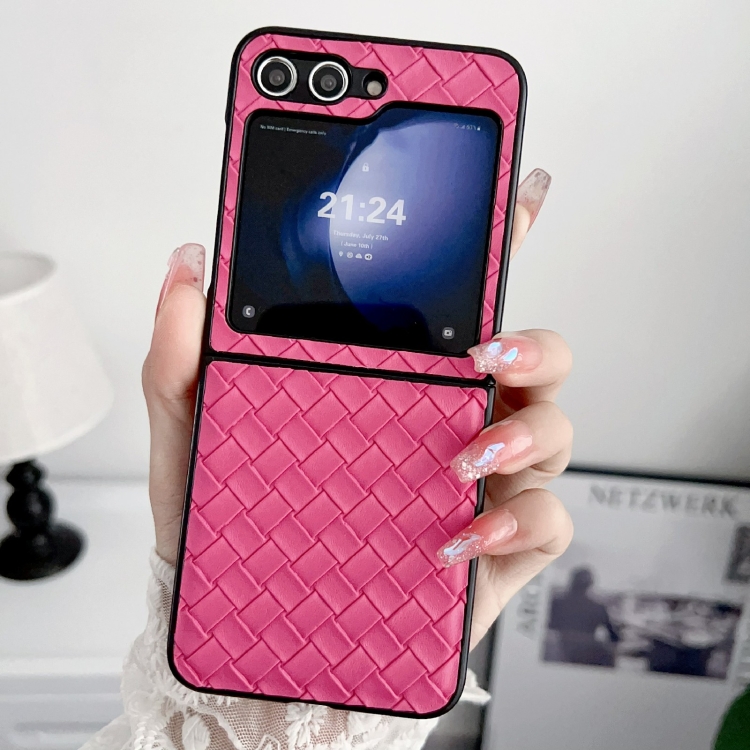Funda Plegable Samsung Galaxy Z Flip5 Protección PU Textura Tejida (Rojo Rosa)