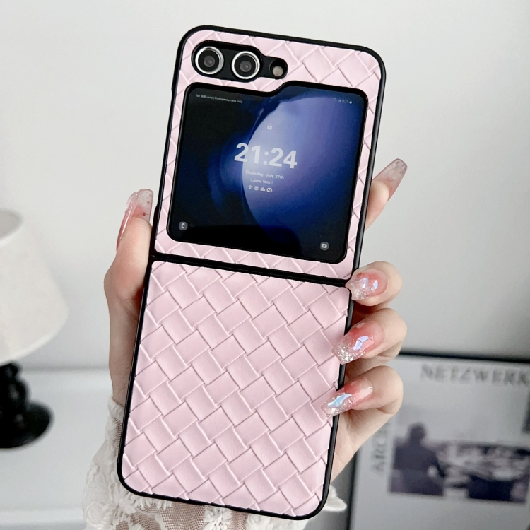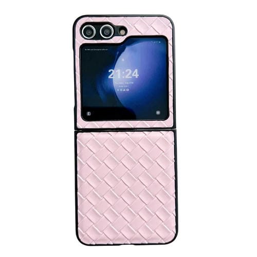 Funda plegable para teléfono Samsung Galaxy Z Flip5 de PU con textura tejida (Rosa)