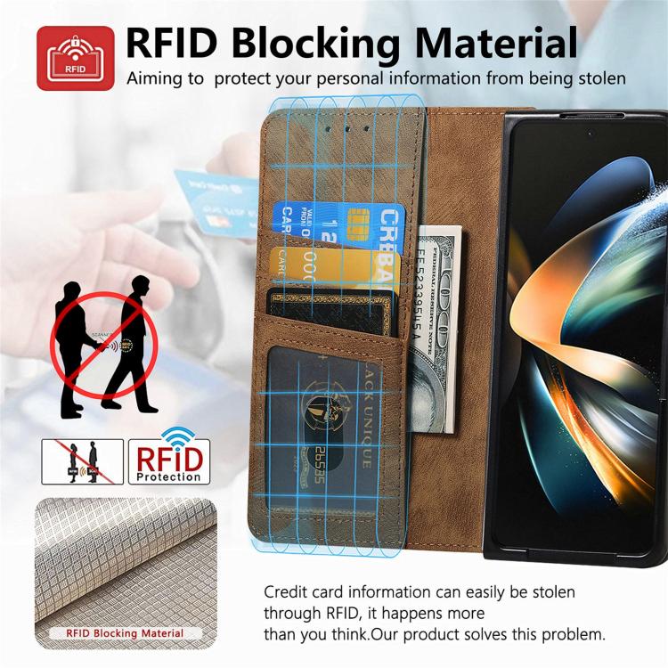 Funda para Samsung Galaxy Z Fold4 Retro Magsafe Cuero con Billetera y Cremallera Magnética (Marrón)