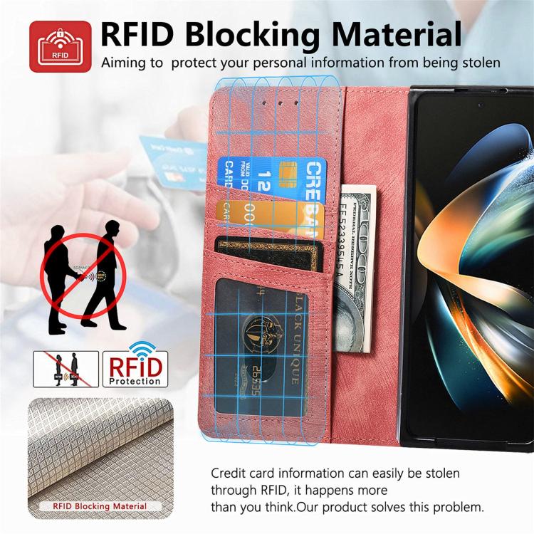 Funda para Samsung Galaxy Z Fold4 Cuero Retro Billetera Cremallera Magnética (Rosa)