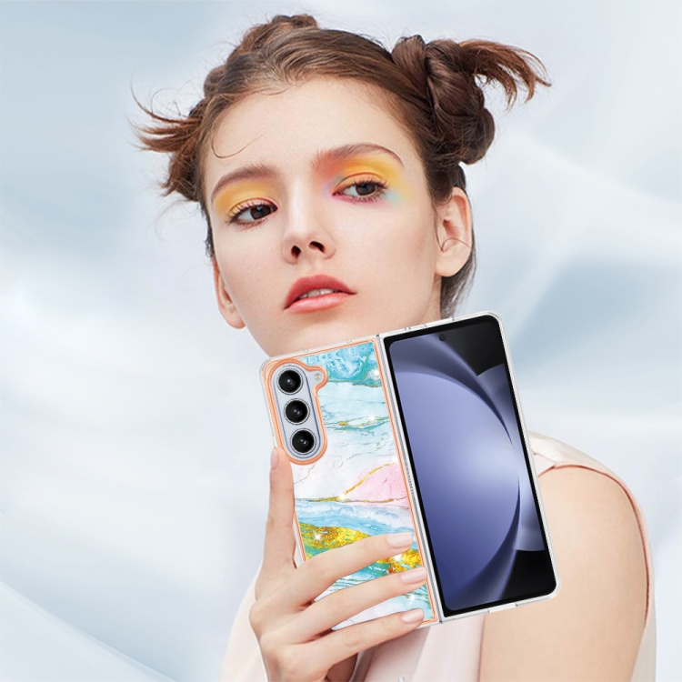 Estuche para Teléfono Samsung Galaxy Z Fold5 5G Imd Doble Cara Mármol Galvanizado (Verde)