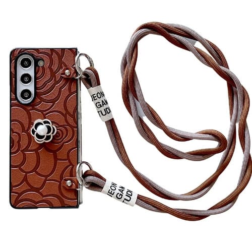 Funda Protectora Samsung Galaxy Z Fold5 5G Impression Camellia Pattern con Cordón Largo (Marrón)