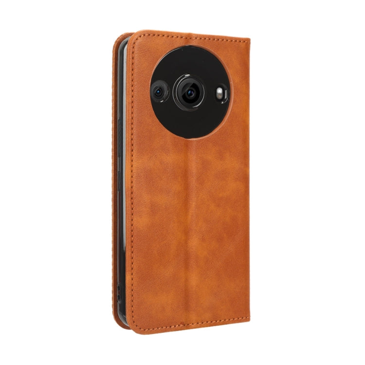 Funda de Cuero con Hebilla Magnética para Sharp Aquos R8 Pro Textura Retro (Marrón)