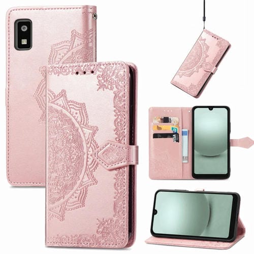 Estuche para Sharp Aquos Wish 3 Mandala Flower de Cuero en Relieve (Oro Rosa)