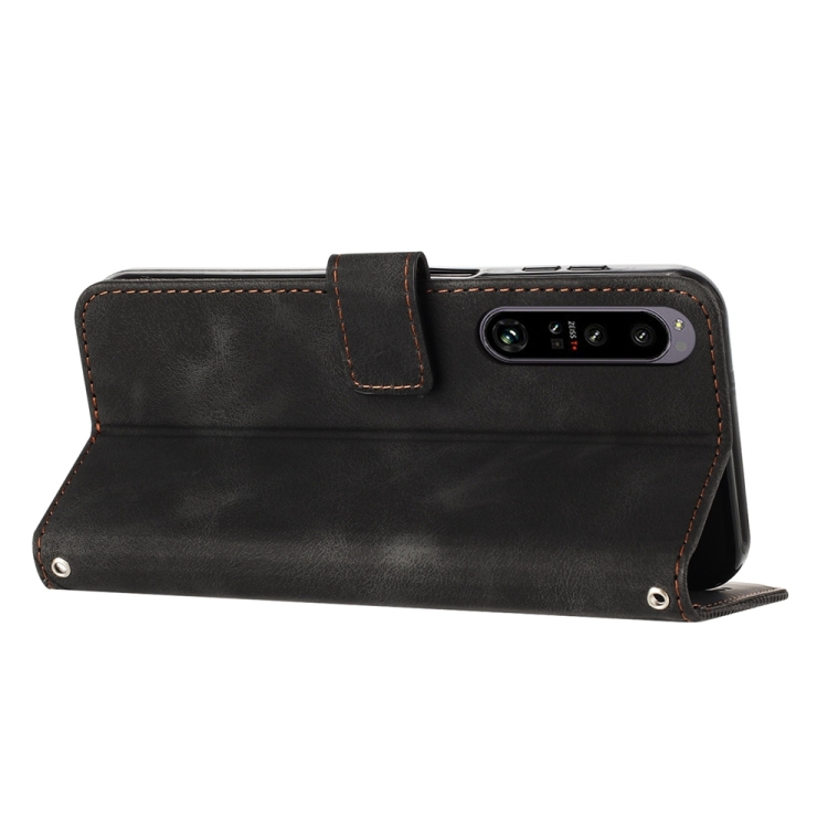Funda de Cuero Dream Triangle para Sony Xperia 1 IV con Cordón (Negro)