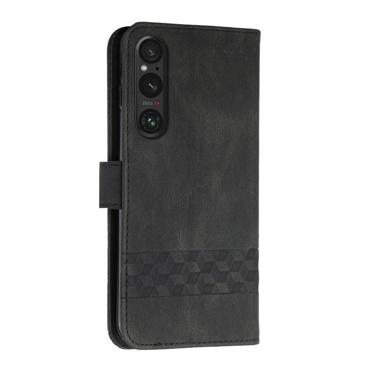 Funda para Teléfono Sony Xperia 1 V (2023) de Cuero con Tapa Cubic Skin Feel (Negro)