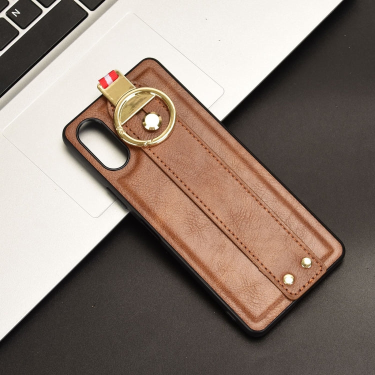 Funda Trasera de Cuero para Sony Xperia 10 Vi con Pulsera (Marrón)