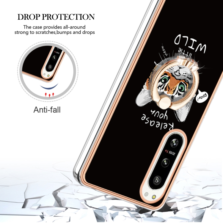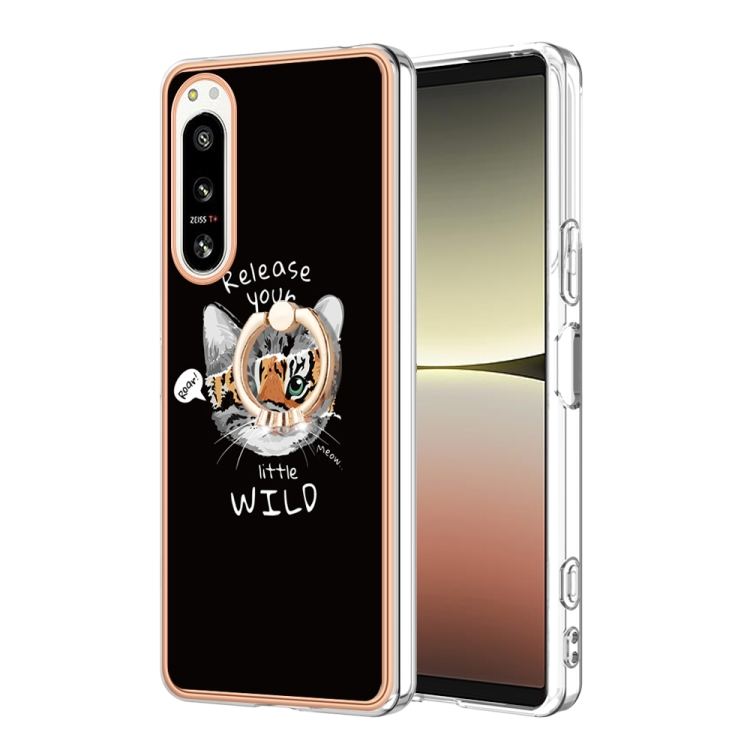 Funda para Sony Xperia 5 IV Galvanoplastia IMD Doble Cara con Soporte para Anillo (Crecimiento Natural)