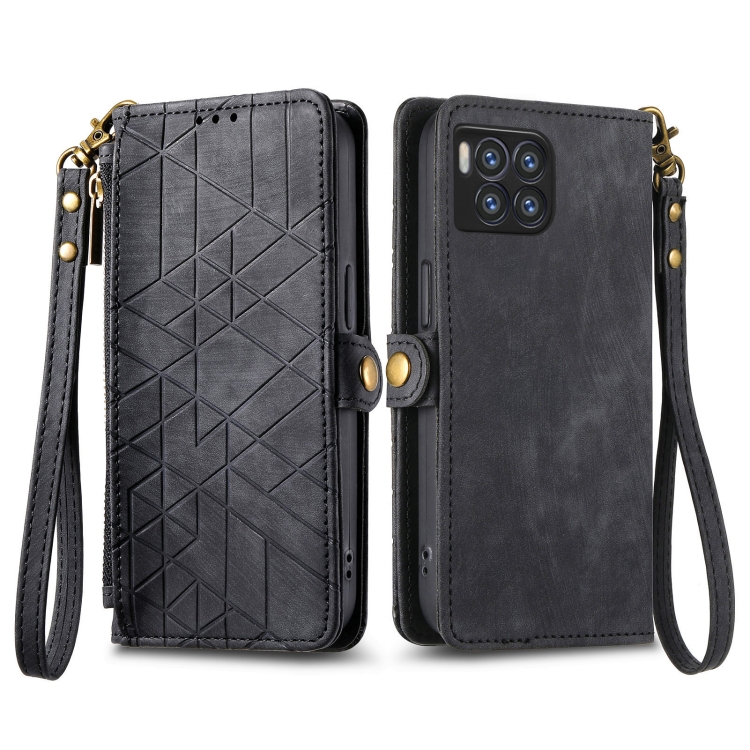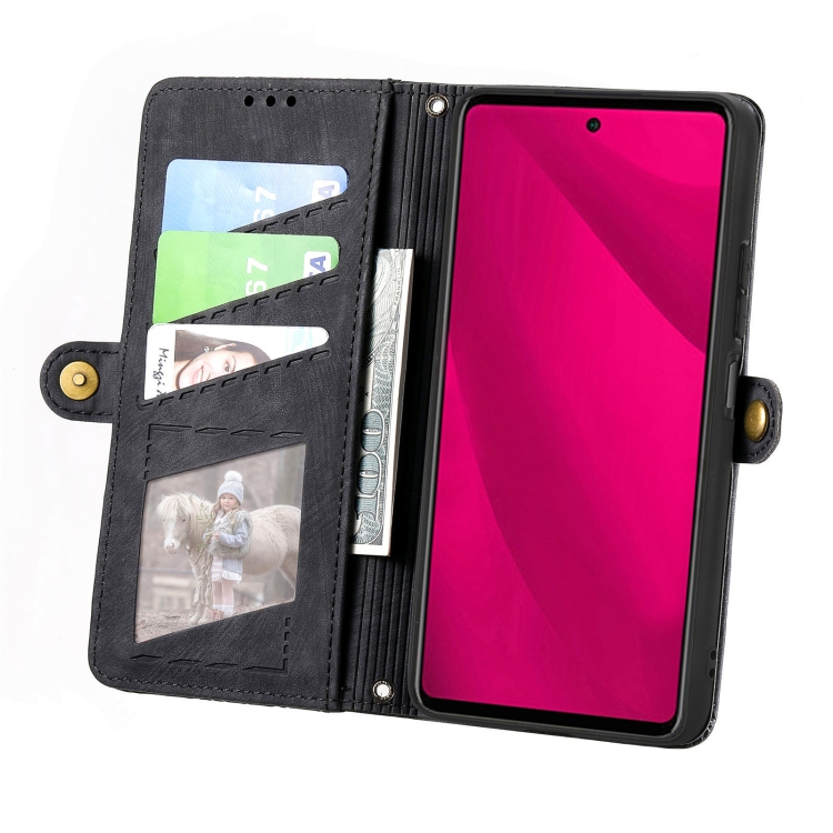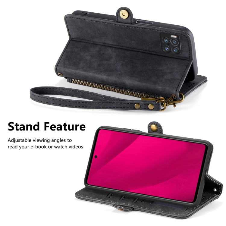 Funda de Cuero para T-Mobile Revvl 7 Pro 5G con Hebilla Lateral y Billetera con Cremallera (Negro)