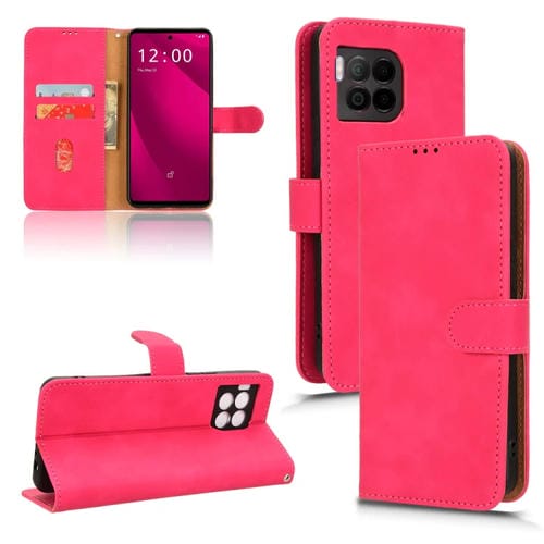 Funda de Cuero con Tapa Magnética para T-Mobile Revvl 7 Pro 5G Skin Feel (Rojo Rosa)