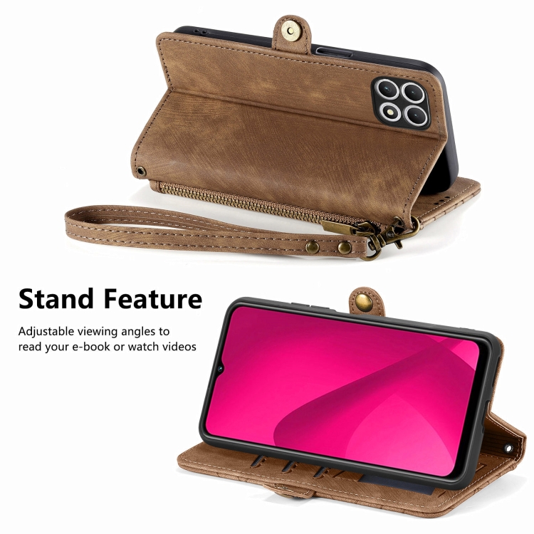 Funda de Cuero para T-Mobile T Phone 2 Pro 5G con Hebilla y Billetera (Marrón)