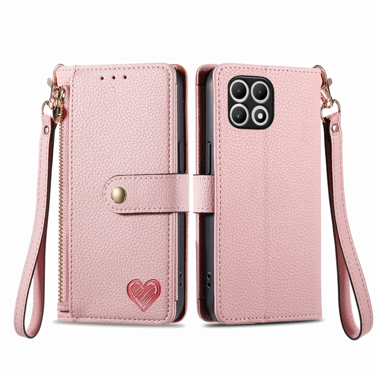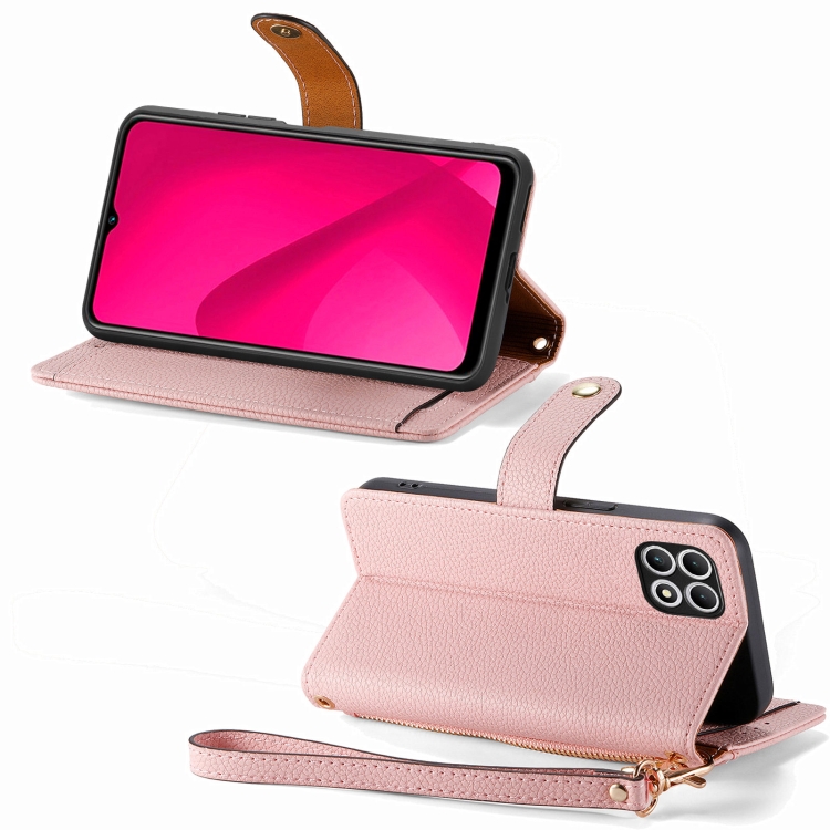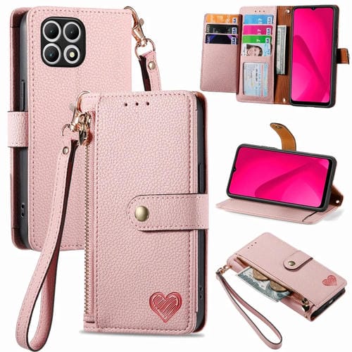 Funda de Cuero para T-Mobile T Phone 2 Pro 5G con Love Zipper Lanyard (Rosa)