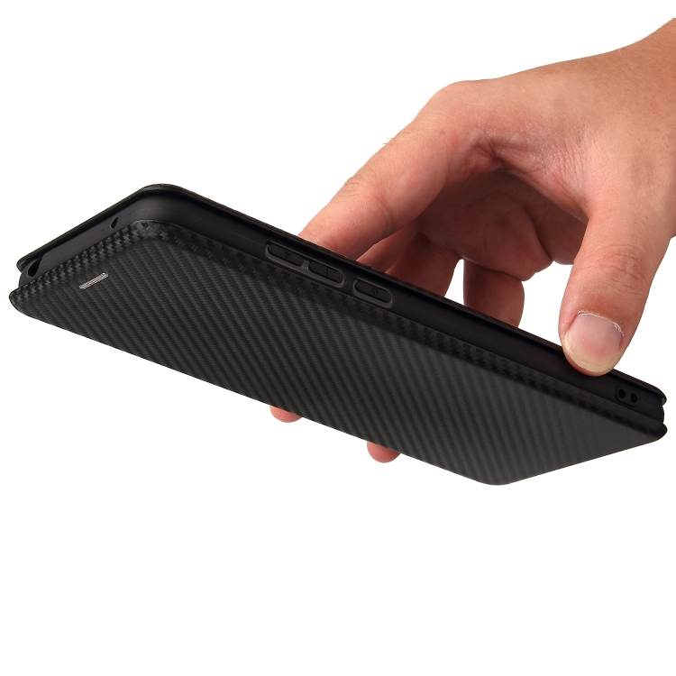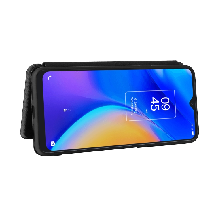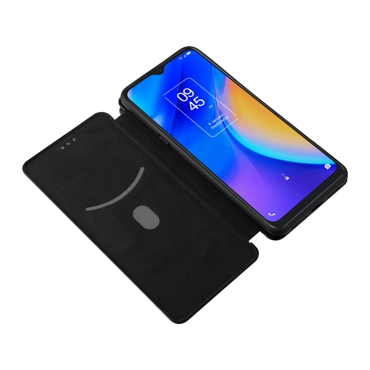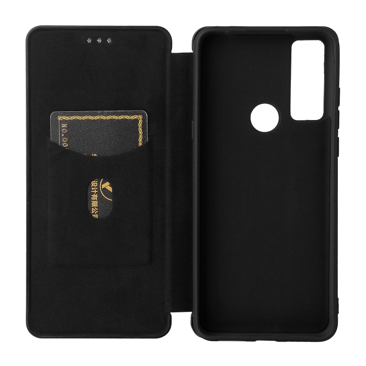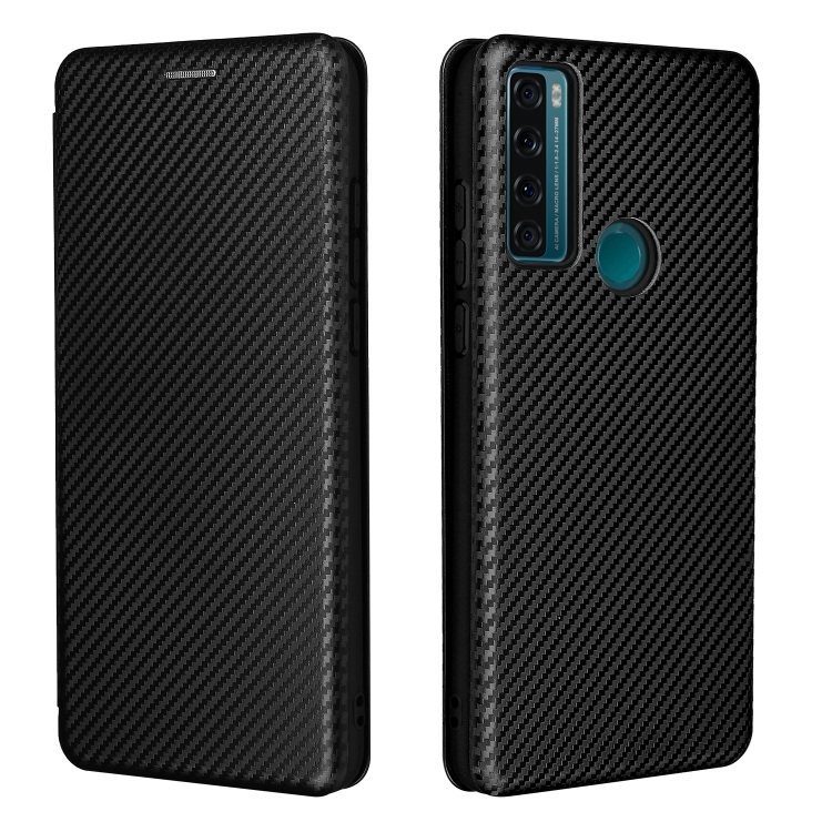 Funda para TCL 20 SE Textura Fibra de Carbono Magnético Horizontal Flip TPU + PC con Ranura para Tarjeta (Negro)